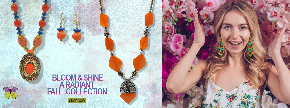 Boho Teardrop Dangle Earrings – Antique Gold with Beaded Accents 2.7"#HNE91033(GB10)