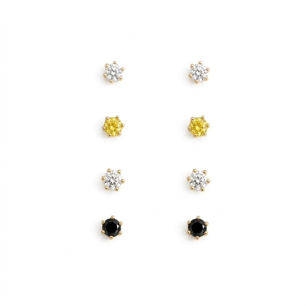 Stop guessing which studs go together. This deluxe 8-piece stacking set provides a complete, professional-looking "curated ear" in one box. We’ve expertly balanced classic high-clarity clear stones, bold minimalist black accents, and a pop of vibrant sunny yellow to create a versatile, modern look. Plated in warm gold, this set includes varied sizes designed to cascade perfectly from your first lobe piercing up to your highest cartilage. Wear them all together for a full-glam stack, or mix and match daily for an infinite variety of looks.