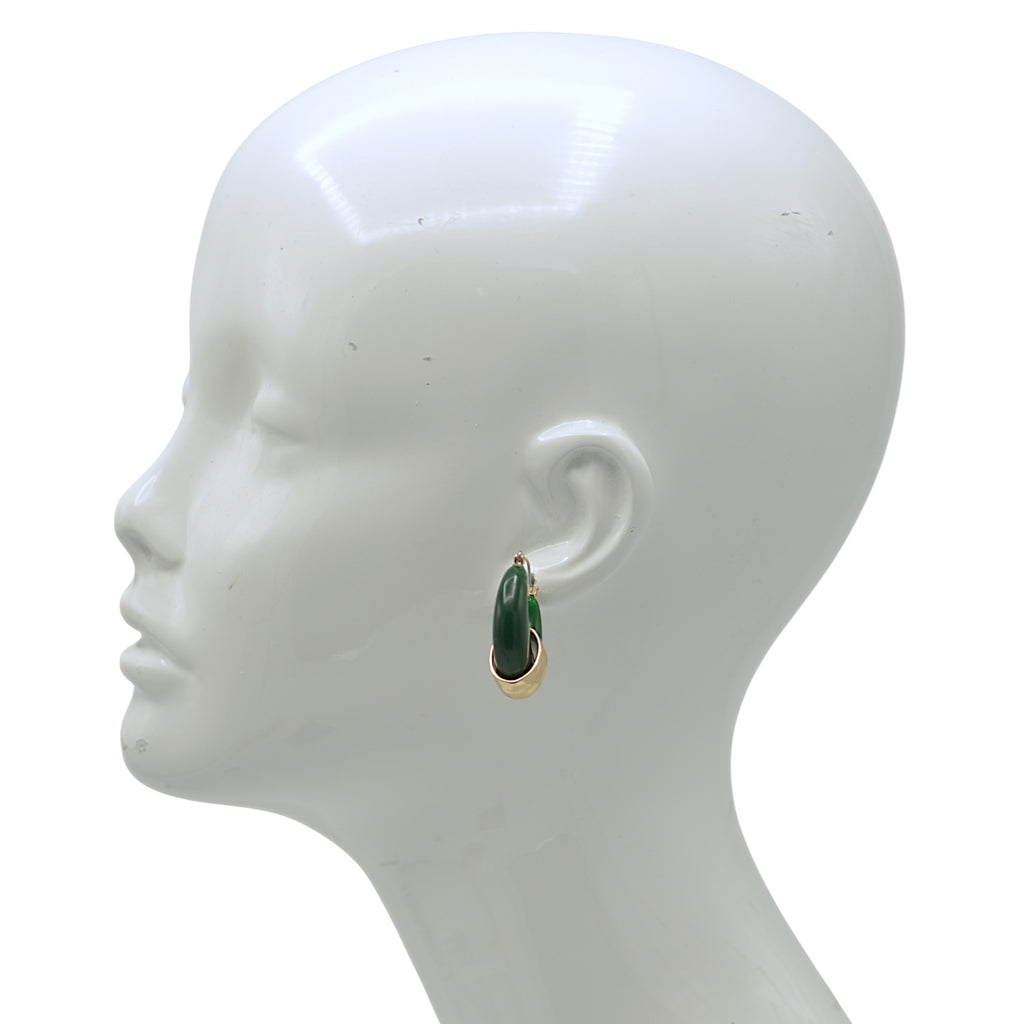 Make a sophisticated statement with these striking Emerald Green C-Hoop Earrings. Featuring a glossy, deep forest green resin body, these hoops offer the luxurious look of jade or malachite without the heavy weight. The design is anchored by a stunning, textured gold-tone metal cuff that wraps securely around the bottom curve, adding a flash of metallic shine to the rich green tones.