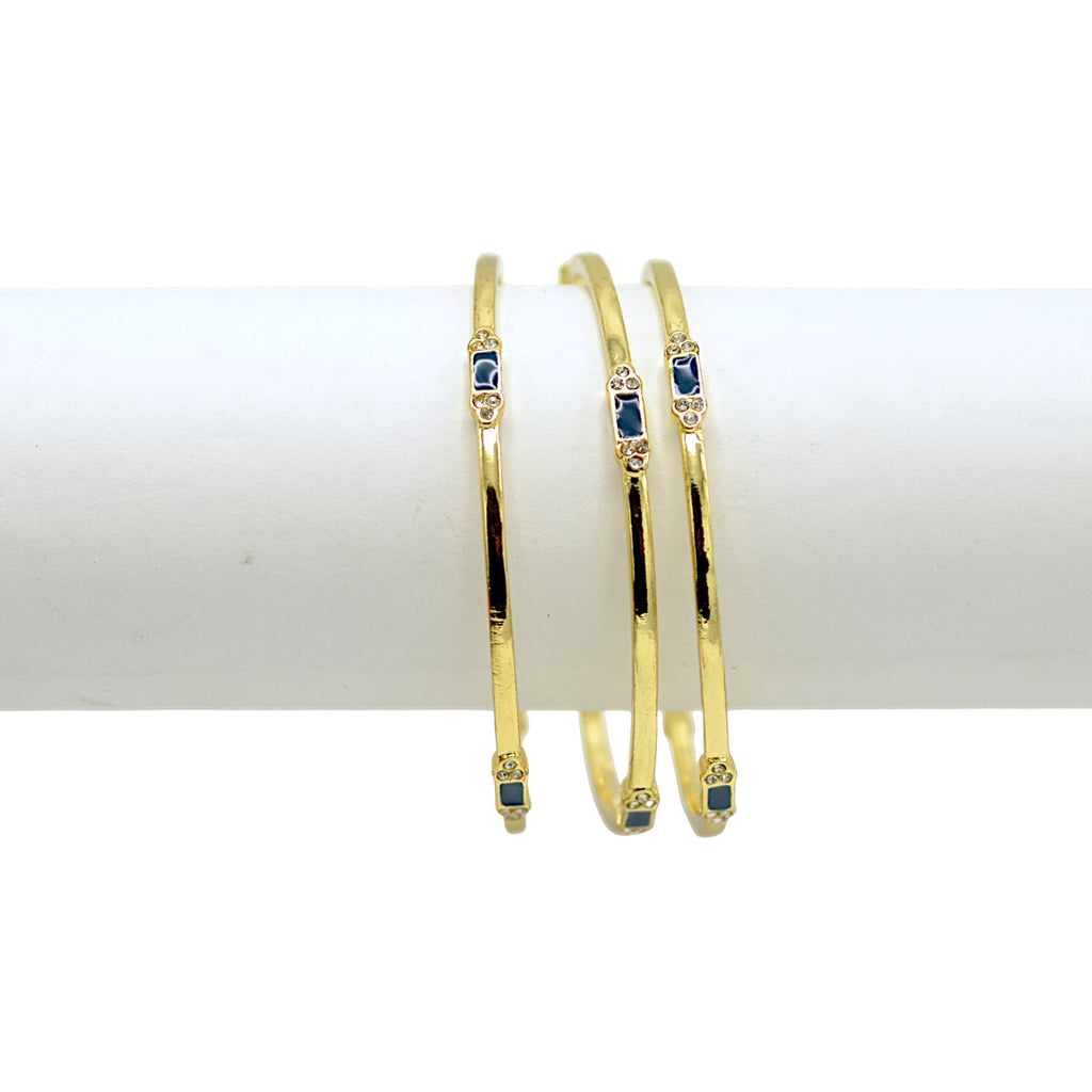 Gold-Tone Navy Enamel White Crystal Set Of 3 Bracelets