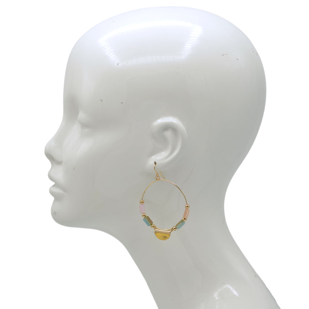 Add a touch of modern elegance to your look with these gold-tone hoop earrings. Featuring pastel-colored cylindrical beads, polished gold spacer beads, and a chic half-moon charm, these earrings are perfect for both casual wear and special occasions. Lightweight and stylish, they bring a playful yet sophisticated vibe to any outfit.