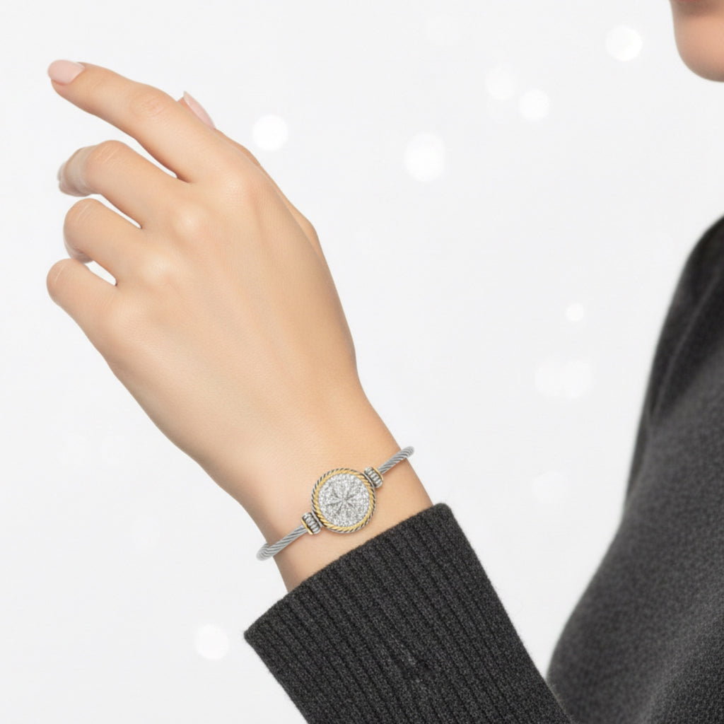 TWO-TONE CRYSTAL MARCASITE FINISH  TWISTED ROPE  BRACELET